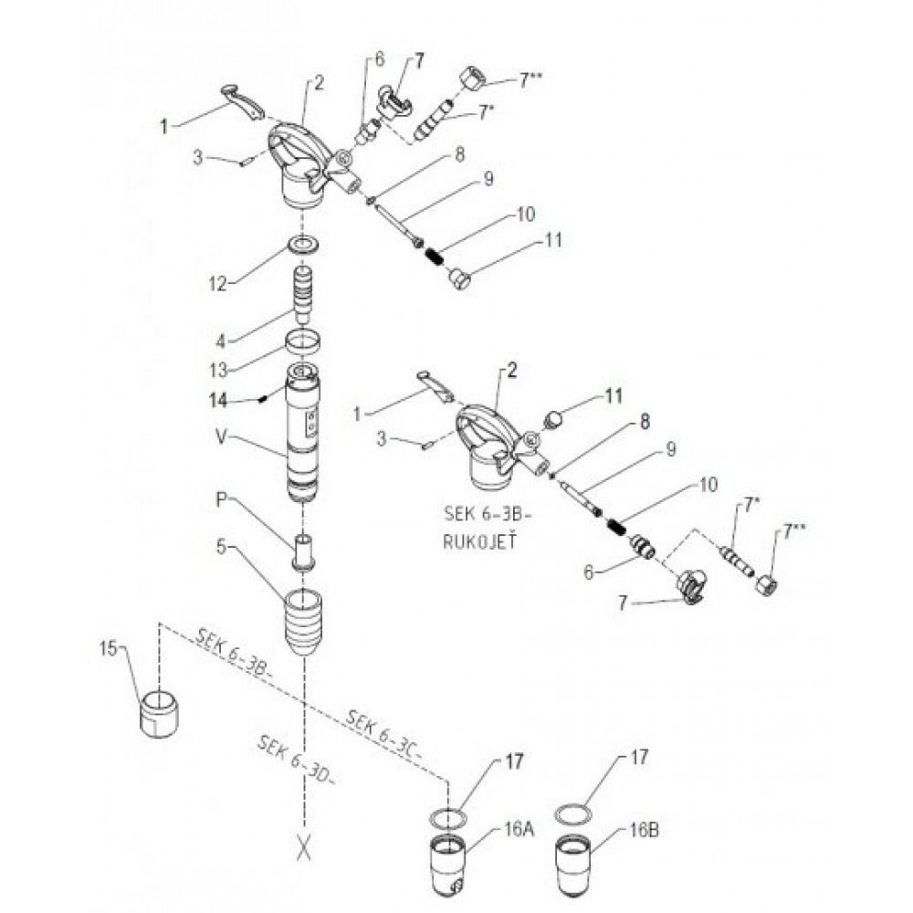 Ciocanele pneumatice de tăiat SEK 6-3CA (#19x50) asigură o utilizare universală. Se folosesc în mod special în construcții (lucrări ușoare de debitare și demolare, caneluri, curățare), turnătorie (curățarea turnării, decuparea coloanei), prelucrarea pietrei, precum și în sculptură.