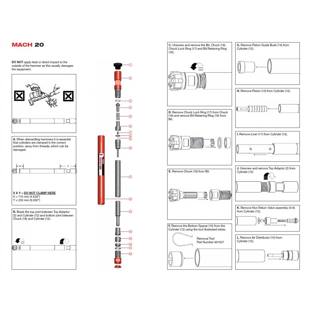 Designul cu supapă a ciocanului de fund Mach 20 oferă performanțe ridicate la presiune scăzută. Este prevăzut cu o supapă de reținere pentru a preveni patrunderea apei la forajele unde este prezenta apa. Mach 20 are un design puternic, robust, pentru a rezista la aplicații grele. Designul unic al prinderii sapei de foraj pentru Mach 20 nu folosește tub de plastic, ceea ce reduce posibilitatea defecțiunii ciocanului. Prinderea sapei de foraj pentru ciocanul de fund Mach 20 are o durată lungă de viață. Diametre de gaurire de 70 – 76 mm (2 3/4 – 3”).